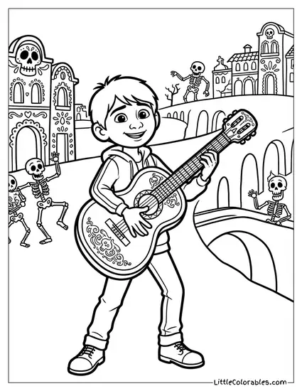 The background buildings offer great practice for coloring within smaller boundaries.